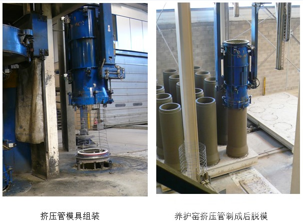 REIFF(德國)有一條上世紀(jì)80年代的垂直徑向擠壓生產(chǎn)線,采用固化窯的形式,現(xiàn)場生產(chǎn)1400規(guī)格的承插排水管。模具后。帶著擠壓管的固化車在環(huán)形固化窯中運行,每個循環(huán)中固化一批擠壓管。這種窯爐在生產(chǎn)過程中不需要溫度控制系統(tǒng)和相關(guān)設(shè)施,只需要在循環(huán)過程中保持擠壓管自然裸露狀態(tài)所需的時間和空間。